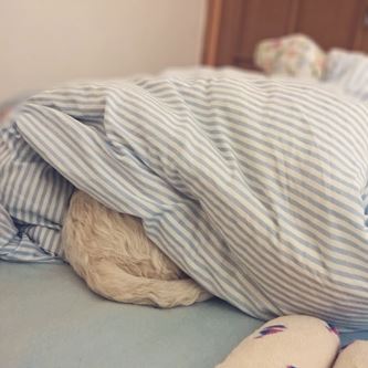 Takhle mě zachytila panička, když se náhle probudila ze snu, ve kterém byla podle všeho paparazzo. Dávali jsme si ráno ještě krátkého šlofíka, abychom naštvali páníčka, který už i tak bručel, že musí do práce. :) Panička usnula a po probuzení mě našla v této poloze, mně na ní nepřijde nic zvláštního, ale panička to páníčkovi vyprávěla s velkým nadšením. Proběhlo to takhle... Jako vždy, když mám dovoleno být u páníčků v posteli, jsem pocítil potřebu zachumlat se pod deku, normálně si čumáčkem šťouchnu do jednoho z nich, nadzvednou mi deku a já si pod ni pohodlně zalezu, jenže panička upadla do komatu, takže ani na desáté šťouchnutí nereagovala. Tak jsem si řekl, že se nějak nacpu po...