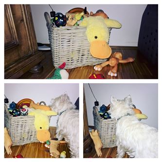 Mí drazí páníčkové mě od malička zásobují hračkami s přesvědčením, že když budu mít dostatek svých věcí, nebudu ničit jejich. A mají pravdu, s jejich věcmi si nehraju, ani s plyšáky patřící paničce, i když teda vypadají lákavě... Ne, ne, raději si vyberu podle nálady ze svých hraček. Mám pískací, chlupaté, žvýkací, míčky, velké, malé, tahací atd. Prostě všechno, co si představíte. Některé už jsme museli vyhodit, protože se mi je podařilo úplně zdemolovat, to jsou holt ty zuby vlkodlaka. :) Přesto jich je pořád hodně, zaplnily celý jeden můj domeček (už jsem vám vyprávěl, že mám i víc pelíšků? :)), a tak panička řešila, kam je do budoucna ukládat, aby to bylo praktické...