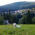 Musím ale říct, že nahoře na Sněžce se mi teda moc nelíbilo, bylo mi horko, do očí foukal vítr, v tlamičce a srsti jsem měl hromadu prachu a nebylo, kde se porochnit, žádná travička, fuj. Navíc jsem se jen tak tak vyhýbal lidem, aby po mně nešlapali. Tam jich snad bylo víc než u nás na Václaváku. :)