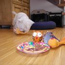 Páníčkové si pro mě připravili malou oslavičku, letos jsem jako dortík dostal pizzu pro pejsky a samozřejmě nové hračky. Oranžové, protože já miluju všechno oranžové.
