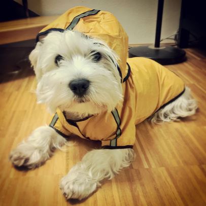 Páníčkové mi pořídili tuhle parádu hlavně do Krkonoš, abych nenachladnul. Pořádné ofouknutí ledovým větrem po nečekaném slejváku už jsem zažil a přestože bez úhony, rád budu pro příště chráněný. Navíc v tom vypadám vážně hodně dobře. ;)